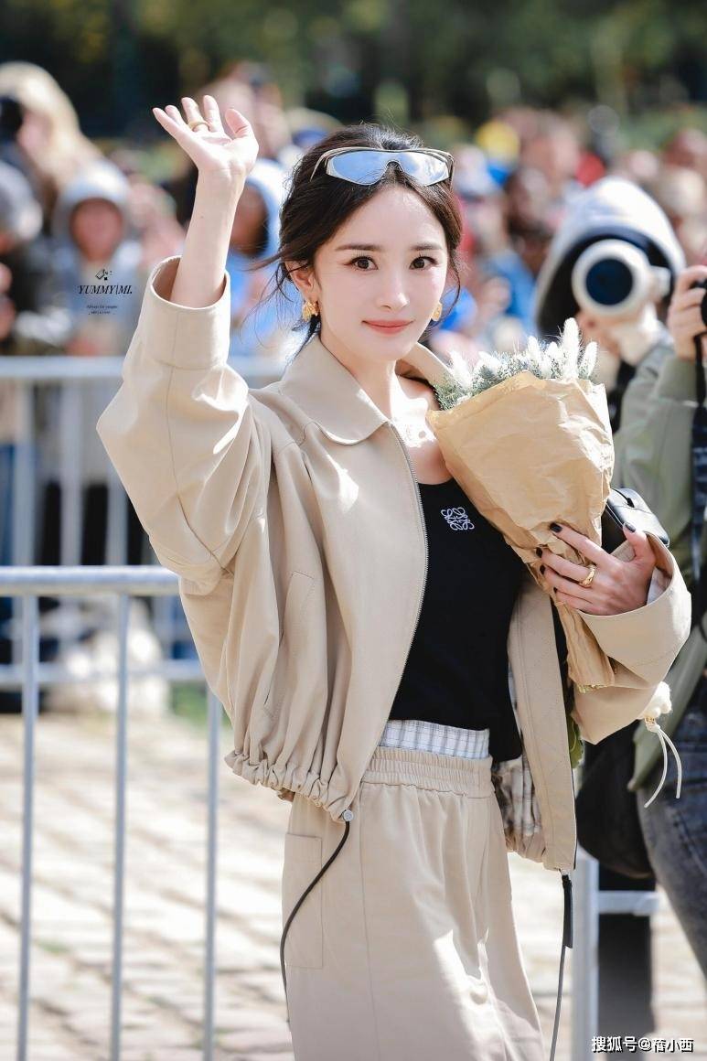 夹克的面料柔软舒适,给人一种高端时尚的感觉,比起牛仔外套,米色夹克更具舒适性和时尚感。下身搭配了一条与上衣同色的阔腿裤,这款裤子垂感极佳,裤型宽松,轻松遮掩大腿根部或腰腹的赘肉,同时让整体造型更显高挑。宽松的裤腿设计还能让女性看起来更加轻松自然,避免了过于紧绷的束缚感。而麻花辫则是杨幂的点睛之笔,这种经典发型,无论哪个年龄段都能展现青春活力。杨幂的麻花辫不仅增添了俏皮感,还通过其蓬松设计带来了一种自然、不拘束的感觉,既显年轻又不失时尚感。整套造型简约大气,走在街头回头率极高,若你也想尝试,不妨效仿这一搭配。