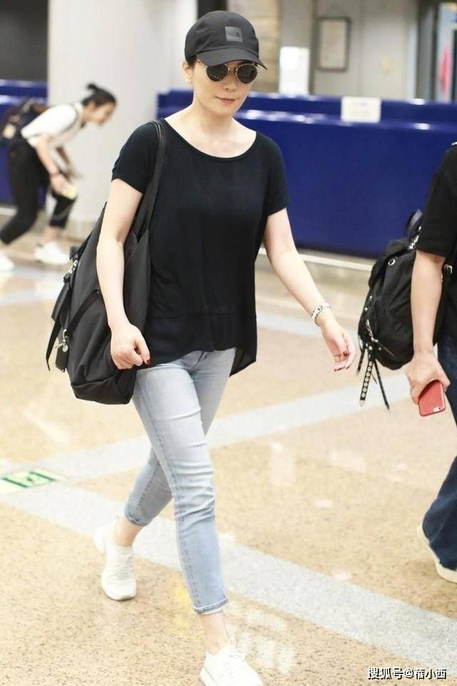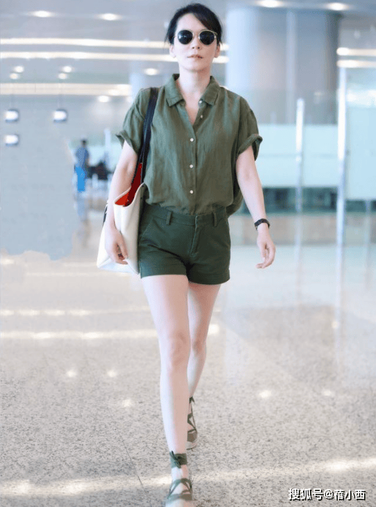 这款绿色短袖上衣设计简洁,却不失细节。柔美的领口设计增添了一份优雅,修饰了脸部轮廓,使整体气质更加温婉。袖口设计有适度的宽松感,能够很好地掩饰手臂线条,整体版型宽松又舒适,特别适合日常休闲搭配。与牛仔裤的搭配,让整体看起来干净利落,清新自然,展现了俞飞鸿的随性魅力。