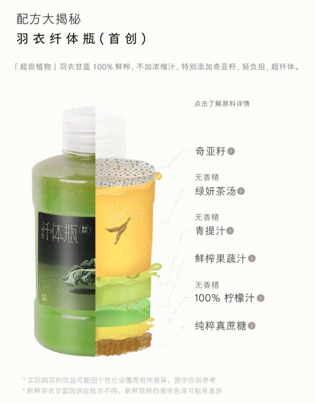 不过,即便羽衣甘蓝已经在行业里“见怪不怪”,“超级植物茶”依然能够保持头部地位。原因或许在于与部分同行会依赖预制浓缩汁不同,喜茶自创立以来总是额外在意新鲜食材在产品中的现制、使用,并将这一做法延续至羽衣甘蓝的系列产品中,据喜茶公布信息,“超级植物茶”全系列已消耗新鲜羽衣甘蓝近三百万斤。而这种坚持,反推了喜茶对原料品质的投入与迭代,甚至能够带动整个源头的品质升级。