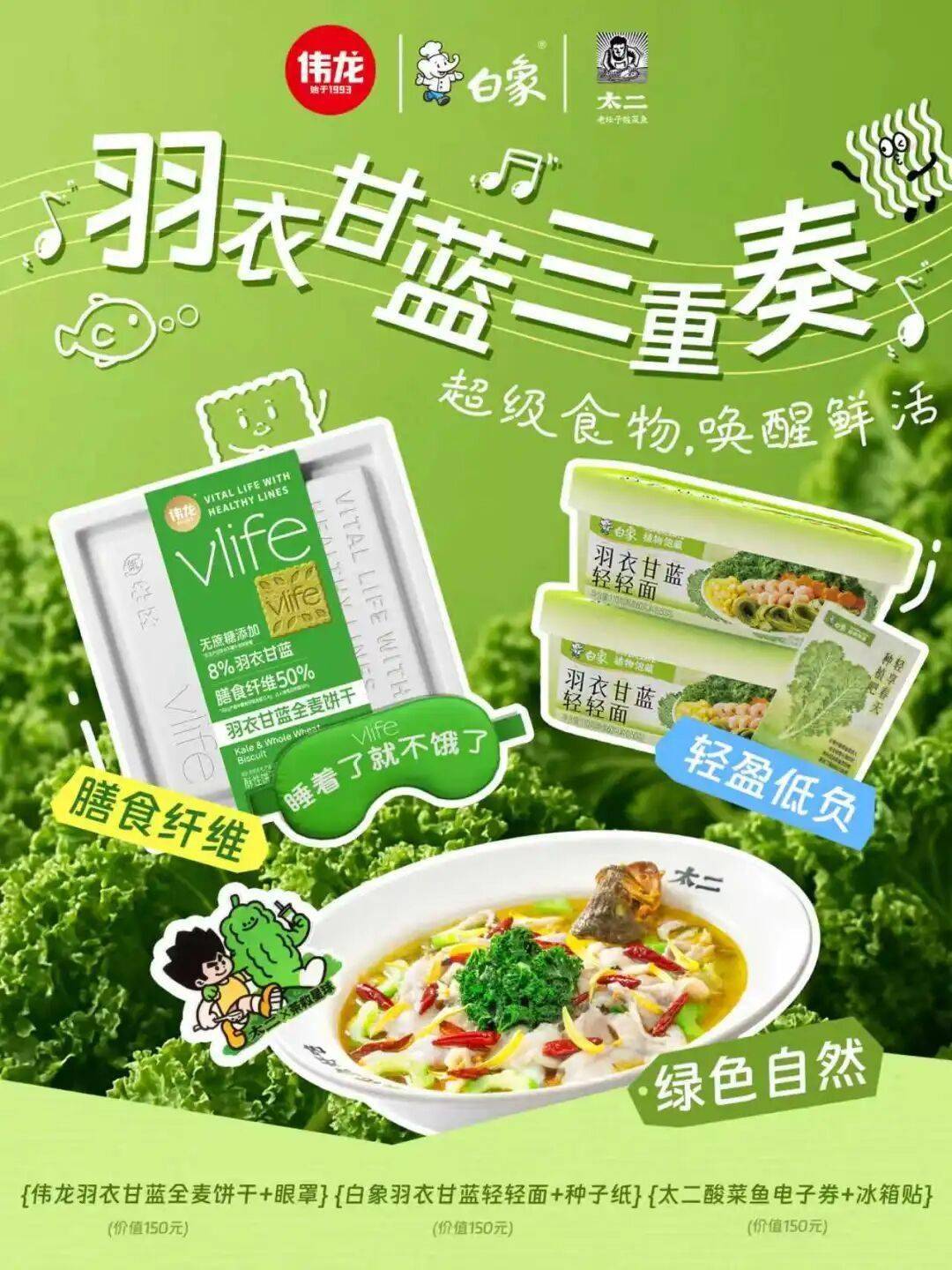 事实上,扩散效应并未止步于茶饮领域。羽衣甘蓝单品还撬开了更多行业和品类的大门,逐步构建出一个丰富的“羽衣甘蓝宇宙”。