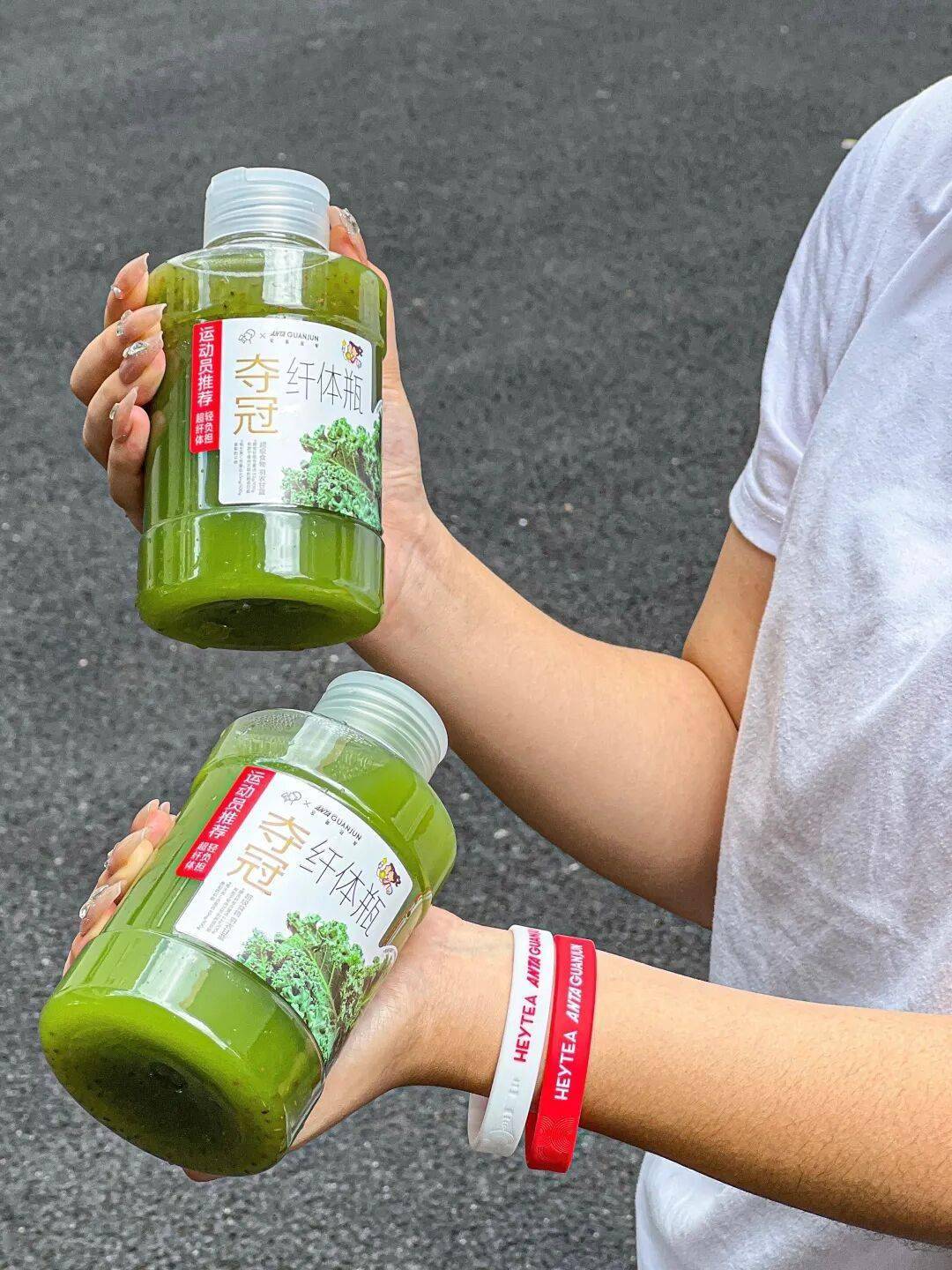 直到2024年7月,巴黎奥运会期间,喜茶推出“夺冠纤体瓶”(后更名“羽衣纤体瓶”)。借助这场体育热潮的营销攻势,羽衣甘蓝与“纤体”二字被紧密绑定。在精准的产品定位切入下,羽衣甘蓝饮品顺势被转化为一种消费符号。
