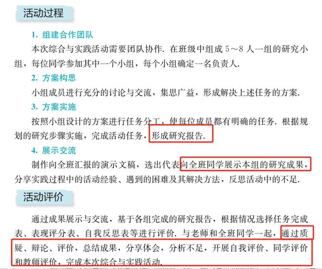 新版教材大部分学科都增加了跨学科实践项目,打通全学科,根据某一个具体的主题,或者解决某一个真实世界存在的问题,培养综合素养。